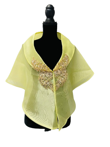 The pañuelo or alampay is a Filipino lace-like embroidered neck scarf or shawl worn around the shoulders over the camisa. They were square-shaped and were folded in half into a triangle when worn. Pañuelos are the direct predecessors of the Manila shawl.